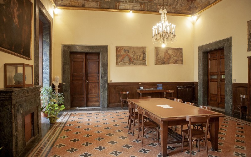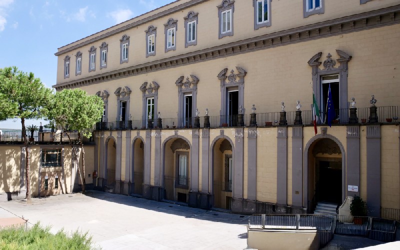 Affacciato su Corso Vittorio Emanuele, il Palazzo Cariati è dal 1922 sede dell’Istituto Pontano. La sua storia affonda nel Quattrocento, quando i Certosini di San Martino iniziarono a cedere i loro terreni: tra i primi acquirenti le monache di Suor Orsola e Giovan Battista Spinelli, consigliere del re Ferrante d’Aragona. Fu proprio la famiglia Spinelli, tra le più antiche della nobiltà napoletana, ad avviare nel 1500 la costruzione del palazzo che avrebbe preso il titolo di Principi di Cariati. Ampliato nel Settecento con un’ala laterale e un belvedere, il complesso conobbe un periodo di abbandono, finché nel 1921 i Padri Gesuiti lo acquistarono, affidando il restauro all’architetto Guido Milone. Oggi conserva saloni con arredi originali, collezioni d’arte e strumenti scientifici, a testimonianza della vocazione culturale e didattica dell’Istituto.