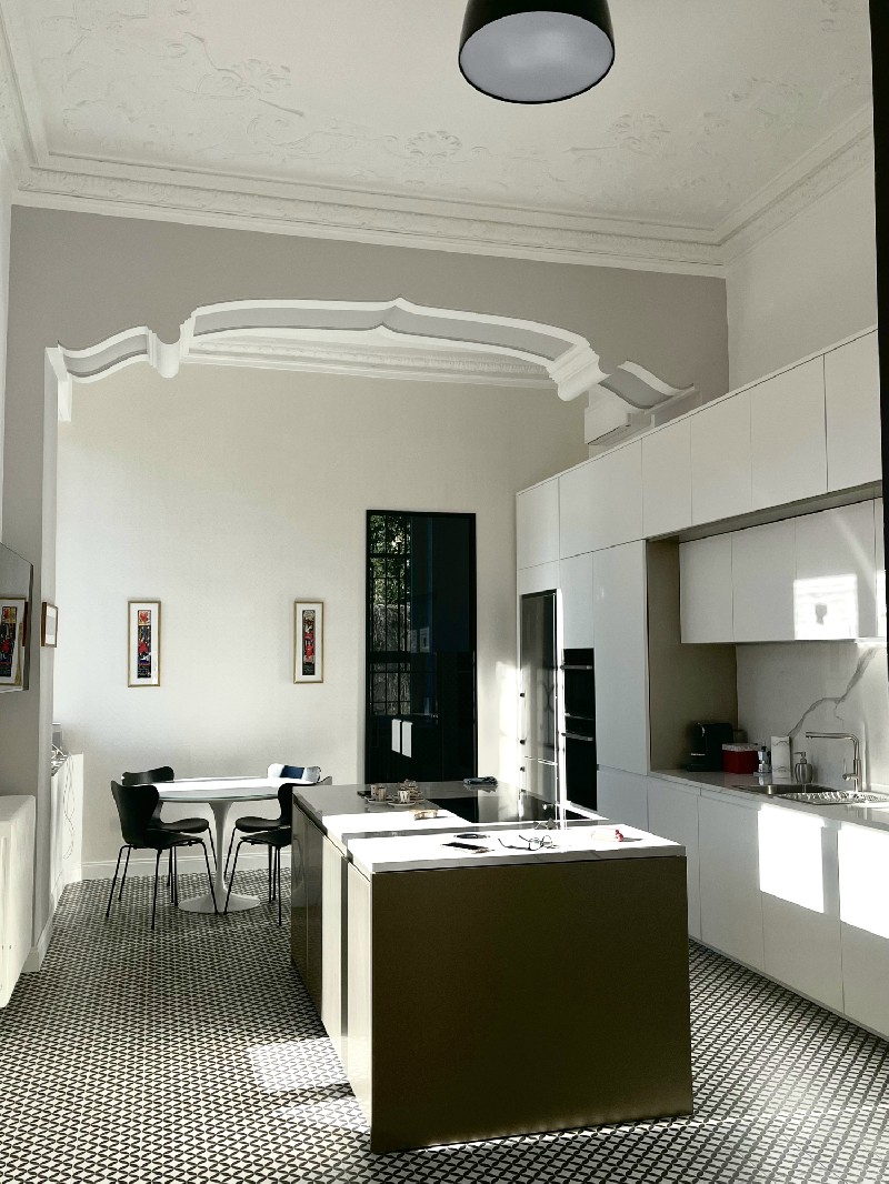 Affacciata sui tornanti panoramici di via Filippo Palizzi, Villa Ascarelli è una delle opere più affascinanti del liberty napoletano, firmata da Adolfo Avena tra il 1913 e il 1915. Fregi floreali, vetrate e balconi immersi nel giardino la rendono un piccolo manifesto Art Nouveau sulla collina del Vomero. Il restauro del piano nobile, realizzato dagli architetti Marinella Rauso e Paola Verde, dimostra come sia possibile abitare la memoria storica senza rinunciare al linguaggio del presente. Gli ambienti, affacciati sul mare, alti oltre quattro metri e illuminati su tre lati, custodivano dettagli preziosi – il cassettonato del salone, pavimenti in legno e marmettine, porte e cornici d’epoca – riportati a nuova vita. Una palette chiara e neutra, nuove distribuzioni e impianti tecnologici disegnano spazi fluidi e luminosi, capaci di accogliere il quotidiano contemporaneo. Il risultato è un interno che respira tra passato e futuro, dove i vincoli diventano occasione di progetto e la stratificazione storica cornice di un nuovo modo di abitare.